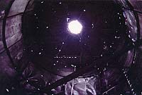 Sculpture is normally supposed to be a tactile rather than a visual medium. The works of Takashi Soga deliberately employing simple forms and dense materials have a scale that dwarfs the human body, stimulating not only the senses of sight and touch but also generating a whole-body experiencing them directly. They may be called "Body-Experience Art". The particular work entitled "Gravitation Quality - Vessel - House" is as big as a real prefabricated house. The entire weight of this house is supported by a lone central column. The column divides into two horizontal branches which balance the structure. Each branch supports a weight made of resin which together serve to keep the house balanced. In the exhibition hall the work sways gently from vibrations in the air, thus creating a growing tension. Although the house is balanced some 8 inches (20 cm) above the floor, you would probably fail to notice this at first, being overwhelmed by the powerful presence of the work. On entering the house and experiencing the vibrations you will be shocked, embarrassed and made to feel insecure and dizzy. You are forced to ask "What is moving? Is it I, the house or the museum itself?" Your entire body and array of senses are stimulated at a far deeper level than by mere impartial observation of the swaying from outside. We human beings have a weak conception of the space which surrounds us. The established function of a house is to shield us from outside elements and protect us from our enemies. In this sense the space inside the house must not be moved. Essentially what Soga does is to create visual representations of gravity, which although invisible is demonstrably tangible, and thereby he overthrows our preconceptions. His works attempt to change the quality of space and connect the effect of gravity with balance and the sensation of movement. Moreover they change the way people view both their own body and the world around them. Kazuko Aono |