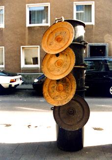 Während der Einführung neuer Mülltonnen im Frühjahr 1998 stellten die Müllmänner die alten Tonnen vor den Wohnhäusern ab, und zwar größtenteils in- und übereinandergestapelt, um so einen möglichst effizienten Abtransport zu gewährleisten. Auf diese Weise entstanden für wenige Stunden - nämlich bis zum Eintreffen des Einsammelwagens - "temporäre Skulpturen" im Stadtraum, die die Künstlerin mit der Kamera festhielt.