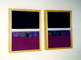 "Samt und Seide" (Ausstellungstitel) ist eher die Ausnahme bei Ruth Knecht. Häufiger sind Frottee, Jeans-Denim, Gestricktes. Die Künstlerin spannt die Textilien auf unterschiedlich breite Platten und ordnet diese zu dritt oder viert übereinander an. Die knapp DINA4 großen Bilder erinnern an geologische Bohrproben - mit unterschiedlichen Farben, Mustern und Oberflächenstrukturen. Manchmal wird die strenge Komposition durch kleine Einsprengsel aufgelockert, die sich zwischen einzelnen Schichten hindurchdrängen. Aus abgelegten Kleidern wird so Kunst, aus Lumpen dann doch "Samt und Seide". Kölner Stadt-Anzeiger, 19. März 1998 (j.s.) |