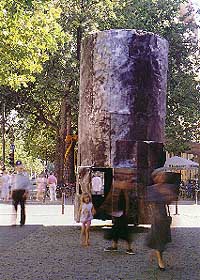 Sculpture is normally supposed to be a tactile rather than a visual medium. The works of Takashi Soga deliberately employing simple forms and dense materials have a scale that dwarfs the human body, stimulating not only the senses of sight and touch but also generating a whole-body experiencing them directly. They may be called "Body-Experience Art". The particular work entitled "Gravitation Quality - Vessel - House" is as big as a real prefabricated house. The entire weight of this house is supported by a lone central column. The column divides into two horizontal branches which balance the structure. Each branch supports a weight made of resin which together serve to keep the house balanced. In the exhibition hall the work sways gently from vibrations in the air, thus creating a growing tension. Although the house is balanced some 8 inches (20 cm) above the floor, you would probably fail to notice this at first, being overwhelmed by the powerful presence of the work. On entering the house and experiencing the vibrations you will be shocked, embarrassed and made to feel insecure and dizzy. You are forced to ask "What is moving? Is it I, the house or the museum itself?" Your entire body and array of senses are stimulated at a far deeper level than by mere impartial observation of the swaying from outside. We human beings have a weak conception of the space which surrounds us. The established function of a house is to shield us from outside elements and protect us from our enemies. In this sense the space inside the house must not be moved. Essentially what Soga does is to create visual representations of gravity, which although invisible is demonstrably tangible, and thereby he overthrows our preconceptions. His works attempt to change the quality of space and connect the effect of gravity with balance and the sensation of movement. Moreover they change the way people view both their own body and the world around them. Kazuko Aono |