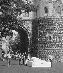 Idea and further specification. The shapes of a dead horse.The assumption that the summer of 1995 was in the sign of the dead horse may be a bit far-fetched, but it is certain that in the field of visual arts there was much to be seen in Cologne. In the aesthetic privacy of the basement of the APC Gallery various copies in plaster casts were exhibited and on the Rudolfplatz lay also a plaster cast of a dead horse, on a plinth, in the middle of the public space. These statues by Johan Wagenaar in Cologne are, as it were, sediments, thoughts which have assumed a temporary shape; a dead horse in the form of a dead horse. The idea for these statues dates back a little less than two years, when Wagenaar came up with the idea to "do something with a dead horse". At that moment I knew nothing about his plan. I got involved in the project only when the moulds of the dead horse already lay on the concrete floor of his studio in Utrecht, fascinating fragments, lumps of silicone rubber. In the transparent substance, trembling like gelatine, but more solid, stuck tufts of hair, thick horsehair. It was an awe-inspiring experience to see the contour of a dead horse gradually loom up before your eyes. I was not present when the moulds were made. This working process, for which Wagenaar was assisted by colleagues and students, was, however, recorded on photographs and video. The black and white quality of the photographs emphasizes the abstract implications of the statues. So still as it appears on the photographs, so peaceful and collected was it certainly not in the abattoir where the cast of the body was made. The stench in that lugubrious hall must have been appalling, a sickly, sharp smell. But then the sculptors were completely occupied by specific problems of a practical and technical nature, which appeal to skill and inventiveness - which degree of bulging of a volume do you have to use if you want to get a form loose, and does the aggregate have enough capacity to keep the plaster centrifuge turning? Finally the idea was actually materialized and the moulds were used to cast the horse in plaster. For the first time you could see it in its full shape, walk around it and carefully study the anatomy of, for example, a nostril. The statue received a remarkable stratification, one you would not quite expect of such a literal manifestation. Usually a too high reality content of a piece of art disturbs the imagination, but this is, remarkably enough, not the case with these horses. The questions which come up are apparently substantial by nature: about life and death, being, not being, temporary manifestation against the empty space of eternity. The sculptural associations which the statue evokes have an almost classical dimension, with the difference that the horse no longer symbolizes power and status, as it always does in knight statues or heroic visual conventions. This horse is floored, dead, gone. But this can be no reason to dramatize or disguise the given of mortality. Strangely enough you are involved in the animal's destiny, without being limited to a feeling of "sad" or "scary". The experience is richer and milder, the awareness is more universal and more spiritual. Wagenaar imparts to the spectator or passer-by his personal fascination; the ethical and aesthetic amazement around a dead horse. On the Rudolfplatz the whitish, vulnerable statue was placed on a square basement, a kind of plinth. The surface on which the horse is laid down is not too rough and not too smooth, no hard dividing line between the volumes (a trick which Wagenaar picked up from Rodin). The bearing surface was touched up and modelled by hand, to an ascetic but loving temporary resting-place. Eveline Vermeulen |