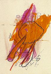 Thomas F. Fischer:"La gaia scienza"Die Mathematik gilt als Inbegriff einer rationalistischen Vorgehensweise: In Formeln und Gleichungen, mit Kurven und Funktionen, mit Lehrsätzen und Berechnungen versucht sie Werte und Wahrheiten auszudrücken, sei es in absoluten Zahlen, oder sei es als Bruchstücke oder Teilmengen. Der solchermaßen ermittelte Zahlenwert (oder Stellenwert innerhalb eines Koordinatensystems) hat etwas Unverrückbares, auch als Bezifferung einer Relation zu anderen Werten. Thomas F. Fischer notiert Berechnungen, Additionen zumeist, auf dem Zeichenpapier. Dies ist der Ausgangspunkt eines bildnerischen Prozesses. Zusammen mit Textfragmenten sind diese Notizen Spuren einer vernunftmäßig angelegten Suche des Menschen nach sich selbst. Aus dem Zusammenhang quantifizierbarer, d.h. meßbarer Werte lassen sich jeweilige Positionen im Weltgefüge ermitteln. Doch wir wissen aus mancherlei Alltagserfahrungen, wie dehnbar die Interpretation von Statistiken ist, wie unverfroren mit Zahlen jongliert werden kann, wie nichtssagend manches Zahlenwerk ist. Der nüchterne, kühle Rationalismus gilt vielfach als ungeheuerlich - seine Erklärungsmodelle bedürfen der Humanisierung durch eine emotionale Komponente. Der Drang nach Gewißheit stößt dort an Grenzen, wo eine Unkalkulierbarkeit, eine Ungewißheit des Daseins immer die Oberhand behält. Fischer zitiert in seinen Zeichnungen Nietzsches "Fröhliche Wissenschaft" - die Ausstellung ist mit der italienischen Übersetzung "La gaia scienza" betitelt, und darin steckt gleichzeitig auch ein Verweis auf die vorhellenistische Erdgöttin Gaia, die Mutter der Titanen. Verborgenes, im Laufe der Geschichte in den tieferen Schichten des kollektiven Bewußtseins verschüttetes Wissen kann hier und dort schemenhaft sichtbar werden: Künstlerische Intuition ist eine der Antriebskräfte dazu. Diese Intuition entzieht sich jeglicher rationaler Grundlage, sie mündet nicht in lexikalisch Sortiertes, dient nicht der Verifizierung von Axiomen. So wirken denn Fischers Zahlenkolonnen geheimnisvoll, wie Chiffren, die für etwas anderes stehen, wobei die Addition gleichzeitig rechnerisch richtig ist: das Verschlüsselte und das Einsichtige sind zwei gleichwertige Komponenten, auch wenn die Zahlen manchmal auf dem Kopf stehen oder durchgestrichen sind. In weiteren Arbeitsgängen überzeichnet Fischer diese Notizen mit farbiger Tusche oder mit einem reliefartigen Auftrag von Aquarellpigmenten; manchmal werden auch markante Kreidestriche hinzugefügt. Als Ergebnis stehen klar umrissene Farbflächen kontrastiv nebeneinander. Auf einem Blatt überlagert ein sattes Gelb ein Rosé mit starker rötlich-violetter Beimischung. Es sind farblich akzentuierte Interpretationen jener Auslotung, die oben als Suche beschrieben wurde, mit einem klaren Bekenntnis zu derTatsache, daß die persönliche Empfindung von Farbe auch sentimental sein kann. Die neuen Zeichnungen sind farbintensiver als frühere, bei denen Fischer Kaffeesatz als Malmittel verwendete. Wo in der aktuellen Ausstellung manches mitunter auch impulsiv wirkt, sollte es jedoch nicht in jenem Sinne als "dionysisch" mißverstanden werden, wie Nietzsche diesen Begriff verwendet hat. Der klare Plan einer Berechnung, die Exaktheit der Angabe einer Lotmessung wird konterkariert durch die Mehrschichtigkeit der Farbanlage. Dadurch werden die Bildebenen diffus, wie auch mancher Erkenntnisprozeß zu einer tiefen Verunsicherung führen kann, eher verwirrend als erhellend ist, oder nur Ahnungen, aber keine konkrete Faßlichkeit hervorruft. Im Alltag sagt ein Rechenergebnis nichts über die anschließende emotionale Bewertung aus, die zu einer Enttäuschung führen kann, wenn die vorherigen Wünsche und Erwartungen mit dem ermittelten Zahlenergebnis nicht deckungsgleich sind. Fischer hat seine Zeichnungen paarweise angeordnet - als Diptychen. So entsteht ein Dialog zwischen analogen Bildaussagen, zwischen einem Bild und seinem Pendant. Wo schon in jeder einzelnen Zeichnung ein dialektisches Verhältnis von Planung und Erinnerung visualisiert wird, ist solch eine Inszenierung mit Bild-Paaren eine stimmige Konsequenz. Jürgen Raap, Kunstforum 141, Juli-September 98 |